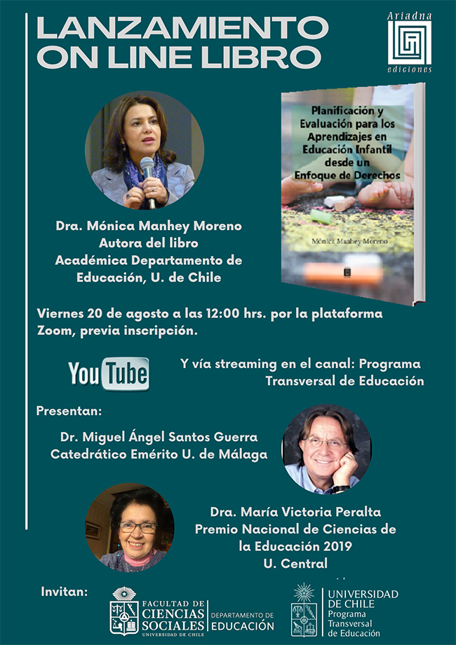 El próximo 20 de Agosto 2021 se realizará el lanzamiento del libro “Planificación y Evaluación para los Aprendizajes en Educación Infantil desde un Enfoque de Derechos”, de la académica del Depto. de Educación, Mónica Manhey.