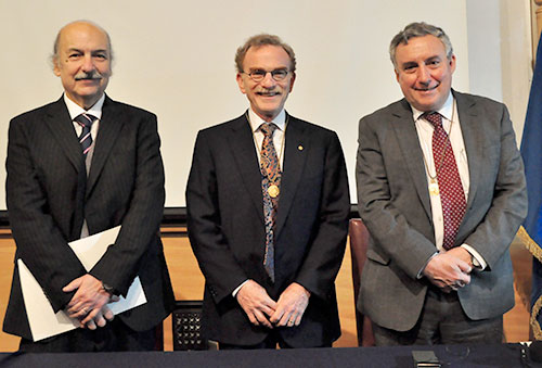 La cita estuvo presidida por el Rector de la Universidad de Chile, Profesor Ennio Vivaldi, quien entregó la Medalla Doctoral al Profesor Shekman, y el Decano (S) de la Facultad de Ciencias Químicas y Farmacéuticas, Profesor Javier Puente.