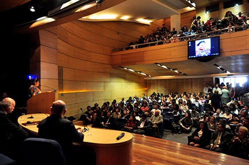 “Yo parto del hecho que la educación no puede ser para robotizar a las personas, la educación tiene que ser para la vida, y si es para la vida, no hay ninguna razón para que la educación sea un derecho privado para las grandes mayorías”, dijo la guatemalteca Dra. Rigoberta Menchú, en el marco de la charla magistral que ofreció este lunes 20 de octubre en la Facultad de Derecho.