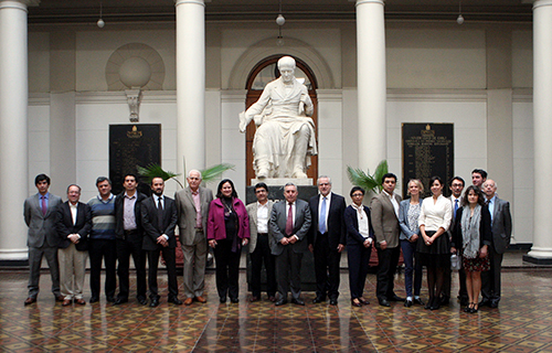 Una decena de profesores e investigadores de diversas unidades académicas de nuestra Universidad – incluidas las facultades de Ciencias Físicas y Matemáticas, Derecho y Ciencias Agronómicas, entre otras– participaron del encuentro, en el que también estuvieron presentes el Prorrector de la U. de Chile, Sergio Jara, y el Dr. Giorgio Solimano, quien lidera la Dirección de Desarrollo Estratégico y Relaciones Institucionales de nuestra Casa de Estudios. Al finalizar la reunión se acordó la conformación de un grupo integrado por miembros de ambas instituciones, que sintetizará los temas tratados en la jornada y propondrá un plan de acción para un próximo encuentro.