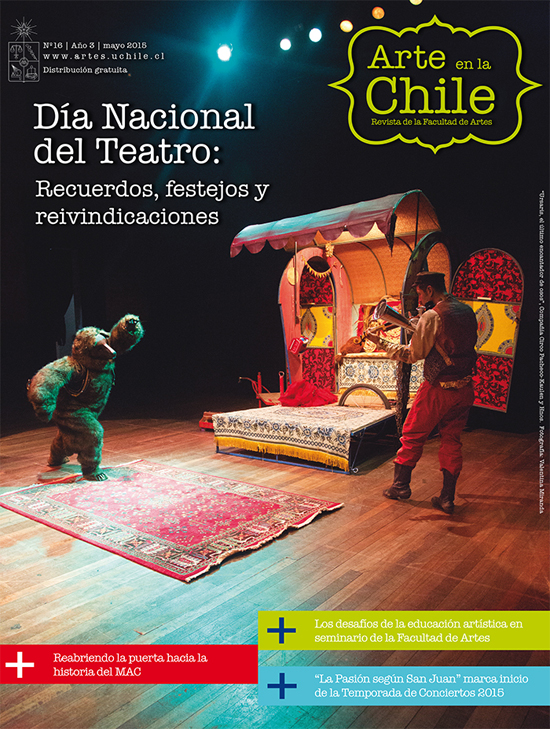 Asimismo podrás saber de las actividades de la Facultad de Artes en torno a la Semana de la Educación Artística (SEA); de la obra Esperando la carroza que se presenta en el Teatro Nacional Chileno (TNCH); del libro Poéticas de la intemperie de Ediciones Departamento de Artes Visuales; la muestra Núñez 85. Dibujar con sangre en el ojo del MAC; sobre la programación del Espacio Elefante y, por supuesto, la Temporada de Conciertos 2015 del Departamento de Música y Sonología (DMUS). Además, de nuestras clásicas secciones que destacan a un egresado y un funcionario de la Facultad de Artes.