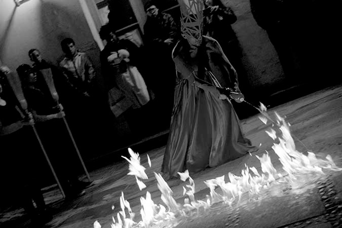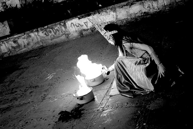 En el patio del Detuch, el performista mexicano Orgy Punk hizo una presentación donde junto a cuatro personas quemaron ajiés para apaciguar los efectos del gas lacrimógeno en la performance “La democracia del gas lacrimógeno".