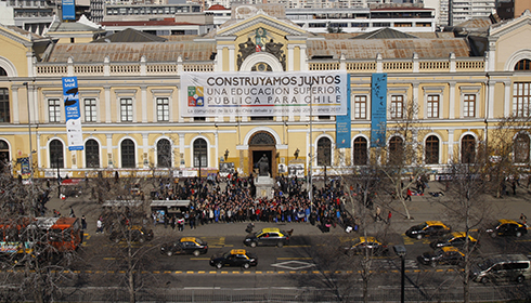 Desplegando lienzos y marchando llegaron los miembros de las facultades de Artes y Derecho al encuentro que marcó el inicio de un proceso de debate sobre la Reforma a la Educación Superior en la U. de Chile, que se extenderá desde este mes de julio hasta enero de 2017. A ellos se sumaron estudiantes, académicos y funcionarios de la totalidad de las unidades académicas de nuestro plantel, quienes repletaron el Salón de Honor y la Sala Eloísa Díaz de la Casa Central para ser parte de la primera cita de este proceso, encabezada por el Rector Ennio Vivaldi.