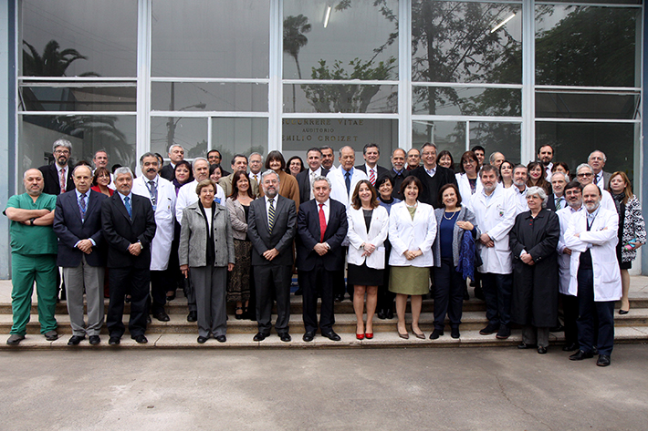 Tras la visita de la Presidenta, el Rector Ennio Vivaldi, junto a toda la plana directiva de nuestro plantel compuesta por el prorrector, Rafael Epstein; la vicerrectora de Asuntos Académicos, Rosa Devés; el vicerrector de Investigación y Desarrollo, Flavio Salazar; la vicerrectora de Extensión y Comunicaciones, Faride Zeran; y el vicerrector de Asuntos Estudiantiles y comunitarios, Juan Cortés; el decano de la Facultad de Medicina, Manuel Kukuljan, participaron de un encuentro realizado en el Hospital, donde se dialogó con la comunidad sobre este hito en las relaciones entre el MINSAL y nuestro plantel. En la instancia porticiparon también los decanos Manuel Agosín de la Facultad de Economía y Negocios; Santiago Urcelay de la Facultad de Ciencias Veterinarias y Pecuarias; Clara Luz Cárdenas de la Facultad de Artes; Arturo Squella de la Facultad de Ciencias Químicas y Farmacéuticas; Roberto Neira de la Facultad de Ciencias Agronómicas; y Víctor Cifuentes de la Facultad de Ciencias. Además estuvieron presentes en la actividad Verónica Cornejo, directora del INTA; Alejandro Ramírez, vicedecano de la Facultad de Filosofía y Humanidades; José Morandé, director (s) del Instituto de Estudios Internacionales; José Miguel Labrín, subdirector del Instituto de la Comunicación e Imagen; Raúl Atria, vicedecano de la Facultad de Ciencias Sociales; Aldo Meneses, director (s) del Instituto de Asuntos Públicos, Juan Carlos Letelier, vicepresidente del Senado Universitario, además de senadores y funcionarios.