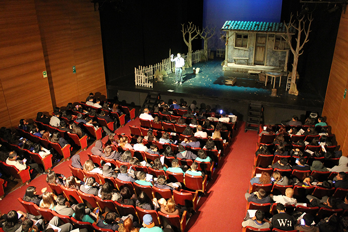 Ante 400 estudiantes de segundo y tercero medio de los cinco establecimientos que forman parte del PACE UCH fue que se presentó la obra "Ánimas de día Claro", un clásico del teatro popular chileno que debutó en 1962 con Víctor Jara como director, y cuyo montaje es parte de las conmemoraciones de los 75 años del Teatro Nacional Chileno.