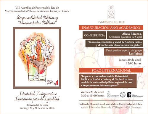 En el marco de este evento, los rectores de las mayores universidades públicas de la región participarán también en el foro "Impacto y trascendencia de la Universidad Pública en América Latina y el Caribe: Hacia un modelo de Universidad pública regional de cara a los procesos sociales emergentes". Además, se realizará la Inauguración del Año Académico 2017 de la Universidad de Chile, ceremonia en la que el grupo Los Jaivas ofrecerá una presentación musical.
