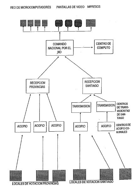 A comienzos de 1988 convergieron varias organizaciones de distintas tendencias políticas, que propiciaban elecciones libres como alternativa al plebiscito que daría continuidad al régimen, y constituyeron el “Comando por el No”. Este definió tres líneas de trabajo: política, técnica (de información y análisis) e inscripción electoral (en el registro abierto en febrero de 1987). Esta última comisión se encargó también de diseñar un Sistema de Recuento Paralelo (SRP) al oficial con el propósito de evitar un probable manejo y distorsión de los resultados, tal como ocurrió en la consulta de 1978 y en el plebiscito de 1980.