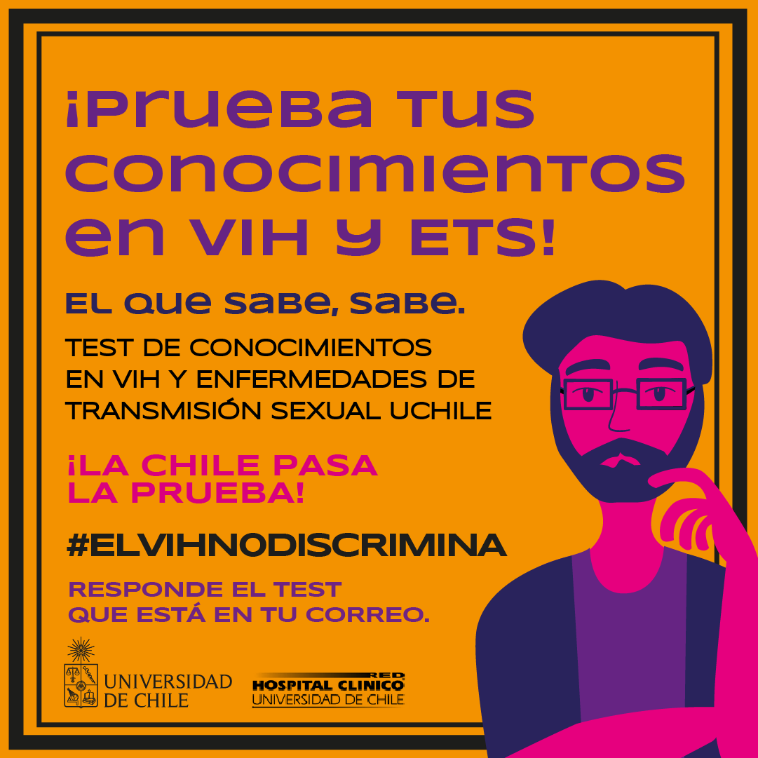 Finalmente, la directora de Pregrado de la Universidad de Chile, Leonor Armanet, hizo un llamado a la comunidad estudiantil a responder el test de conocimientos sobre VIH y ETS. "Llamamos a la comunidad de estudiantes de la Universidad a incorporarse y responder estas preguntas, es un test que demora cinco o diez minutos en ser respondido, y nos va a dar una información sustantiva para poder ordenar lo que es la educación sobre VIH y Enfermedades de Transmisión Sexual en general. En esta edad es donde existe la mayor incidencia de esta infección, por lo tanto, son ellos los que pueden dar las respuestas necesarias para canalizar la prevención. Esto estará disponible mañana, y por un mes, para que los estudiantes puedan responderla", indicó.