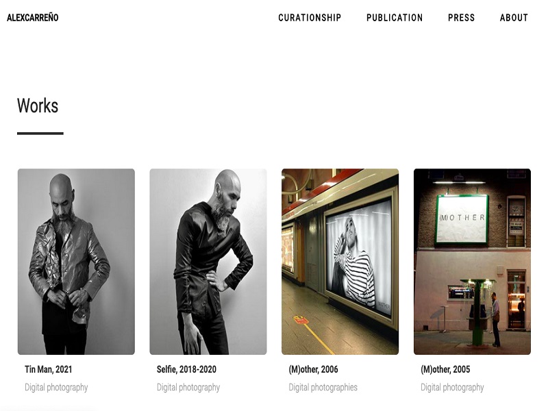 De este modo el artista visual lanzó su página con la obra Tin Man, su más reciente producción artística consistente en una foto-performance, donde usa una chaqueta masculina cubierta de cinta plateada que durante el registro fotográfico, se va desprendiendo. Un proyecto que proviene del mundo de la moda, el arte y el cine y reflexiona sobre el color plateado, considerado como el punto de partida para esta obra.