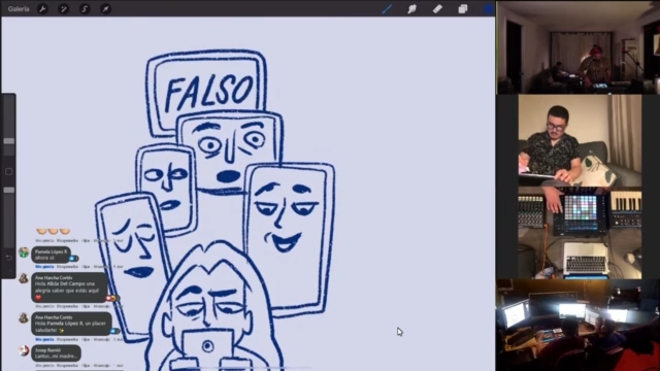 Comunidad de Camila Le-Bert, fue llevado a la pantalla bajo la dirección del joven director contemporáneo Mario Monge y contó con la participación de Juan José Vicuña y Juan Andrés Rivera, quienes desplegaron sus talentos tecnológicos para describir la conversación que mantiene una comunidad de vecinos de un edificio en plena cuarentena.