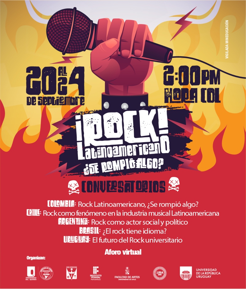 “Esta es una iniciativa que surge de la Universidad del Quindío en Colombia, a partir de la discusión que produjo la miniserie documental Rompan todo: La historia del rock en América Latina estrenada en 2020. A través de la Dirección de Relaciones Internacionales de la Universidad de Chile nos llegó la invitación, y como Facultad de Artes decidimos sumarnos con entusiasmo”, comenta el prof. Javier Jaimovich, académico y director de Relaciones Internacionales de la Facultad de Artes, añadiendo que, considerando la temática del evento, se invitó a los Departamentos de Música y de Sonido de la Facultad a ser parte de la instancia.