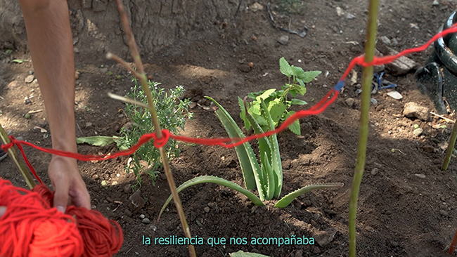 “Buscamos explorar la re-existencia territorial primeramente a través del lenguaje audiovisual como dispositivo gestual, simbólico y afectivo, la sanación simbólica de estos sitios junto a plantas medicinales, poemas en español y mapudungun, y la reactivación de memorias colectivas recientes que nos pueden hacer entender mejor la simbiosis entre cuerpx-territorio y cómo han sido afectadxs a lo largo del tiempo”, contaron las artista.