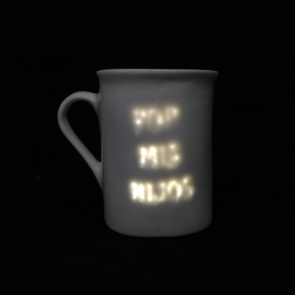“Puesto que la porcelana tiene la característica de ser traslúcida, se pueden generar imágenes haciendo interactuar las diferentes densidades de las piezas con luz (a esta técnica se la conoce como litofanía). De este modo, a primera vista la instalación simula un espacio doméstico con objetos comunes y corrientes; pero una vez que se encienden luces ocultas en el interior de las cerámicas, aparecen imágenes que le aportan un nuevo sentido”, contó la artista visual.