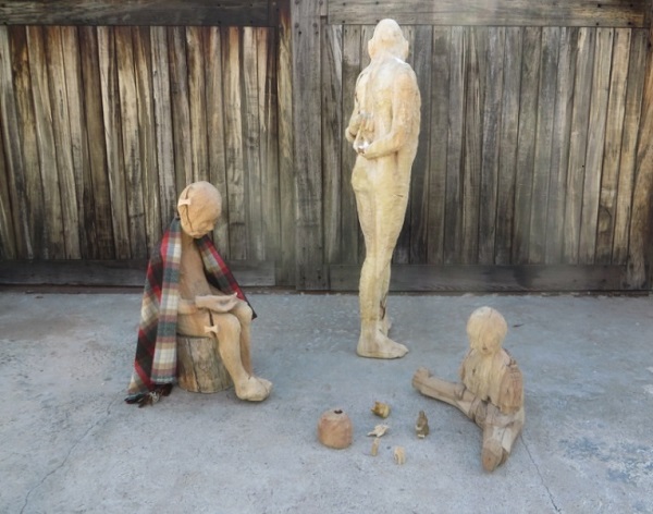 “Elegí esta obra porque contiene una escala humana y cierta fragilidad que me importaba exponer. La madera posee la característica de rajarse y poder reconstruirse a través de la ayuda de ensambles. Me interesaba componer cada una de las figuras con esas particularidades a la vista: cuerpos de naturaleza quebrados, con parches y tarugos”.