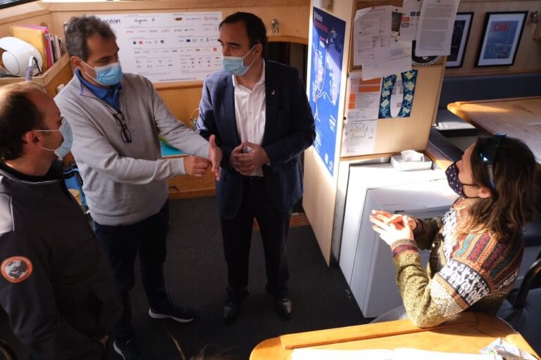 El pasado 1 de marzo, el gobernador de Magallanes y de la Antártica Chilena, Jorge Flies, junto al investigador del Centro de Modelamiento Matemático (CMM) y codirector de la Misión Microbioma-CEODOS, Alejandro Maass, visitaron la goleta TARA en su última parada en Sudamérica antes de continuar con la expedición Misión Microbioma-AtlantEco hacia las costas africanas. En esta ocasión, el gobernador pudo conocer más sobre la filosofía de TARA y la realización de la parte chilena de la Misión Microbioma, la expedición CEODOS, y la exploración en la Antártida.