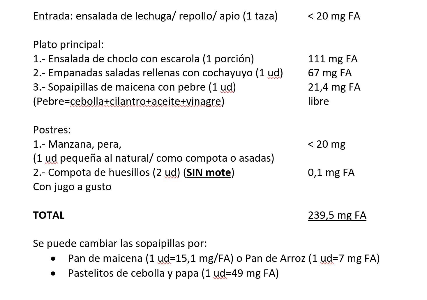 Si pensamos en 4 alimentaciones en el día, de las cuales 2 son Desayuno y Once, las cuales son en base a la fórmula especial que no contiene fenilalanina; los 500 mg de fenilalanina permitidos diariamente se pueden distribuir entre Almuerzo y Cena, lo que implica que cada una de estas alimentaciones debe contener aproximadamente 250 mg de fenilalanina.