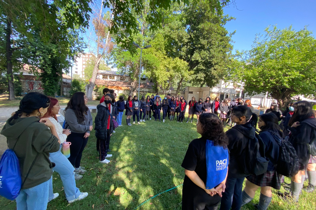 La actividad, parte de las salidas pedagógicas del Programa de Acceso a la Educación Superior de la Universidad de Chile (PACE UCH), cuyo foco es la exploración vocacional, invitó a los y las estudiantes a reflexionar sobre la interdisciplina entre ciencias y arte, a propósito del libro “De cobre, microbios y arte”, publicado el año pasado, y a conocer los espacios universitarios ligados a la experimentación científica y artística.