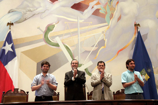 Siguiendo con las formalidades de esta tradicional ceremonia, se realizó la firma del acta oficial del cambio de mando que ratificó la renovación de los dirigentes estudiantiles para el nuevo período. Así, la mesa central quedó compuesta por Andrés Fielbaum como presidente y segunda gestión consecutiva del colectivo Izquierda Autónoma; el vicepresidente Fabián Araneda, de la lista Luchar; la secretaria general Rebeca Gaete, militante de las Juventudes Comunistas; el secretario de comunicaciones Sebastián García, miembro de la Nueva Izquierda Universitaria (NIU) y el secretario ejecutivo Francisco Montoto, ligado al gremialismo.