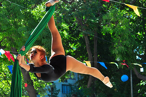 El flashmob por la educación abrió la actividades recreativas de la jornada, y mientras los visitantes fueron recorriendo los rincones de la Facultad de Arquitectura y Urbanismo (FAU), se encontraron con varias otras sorpresas: el canto de Javiera Calvo, alumna de tercer año de Agronomía, quien quiso entregar a los asistentes algunas un poco de música para acompañarlos, un hermoso número circense que combinó los ejercicios en tela y las coreografías de equilibrio y la presentación de un especial payaso que animó las últimas horas de la jornada.
