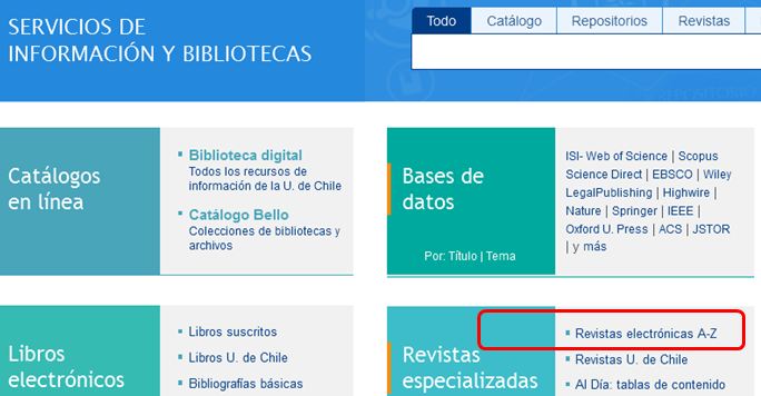 1. Desde el Portal de Información y Bibliotecas, ir a Revistas electrónicas A-Z.