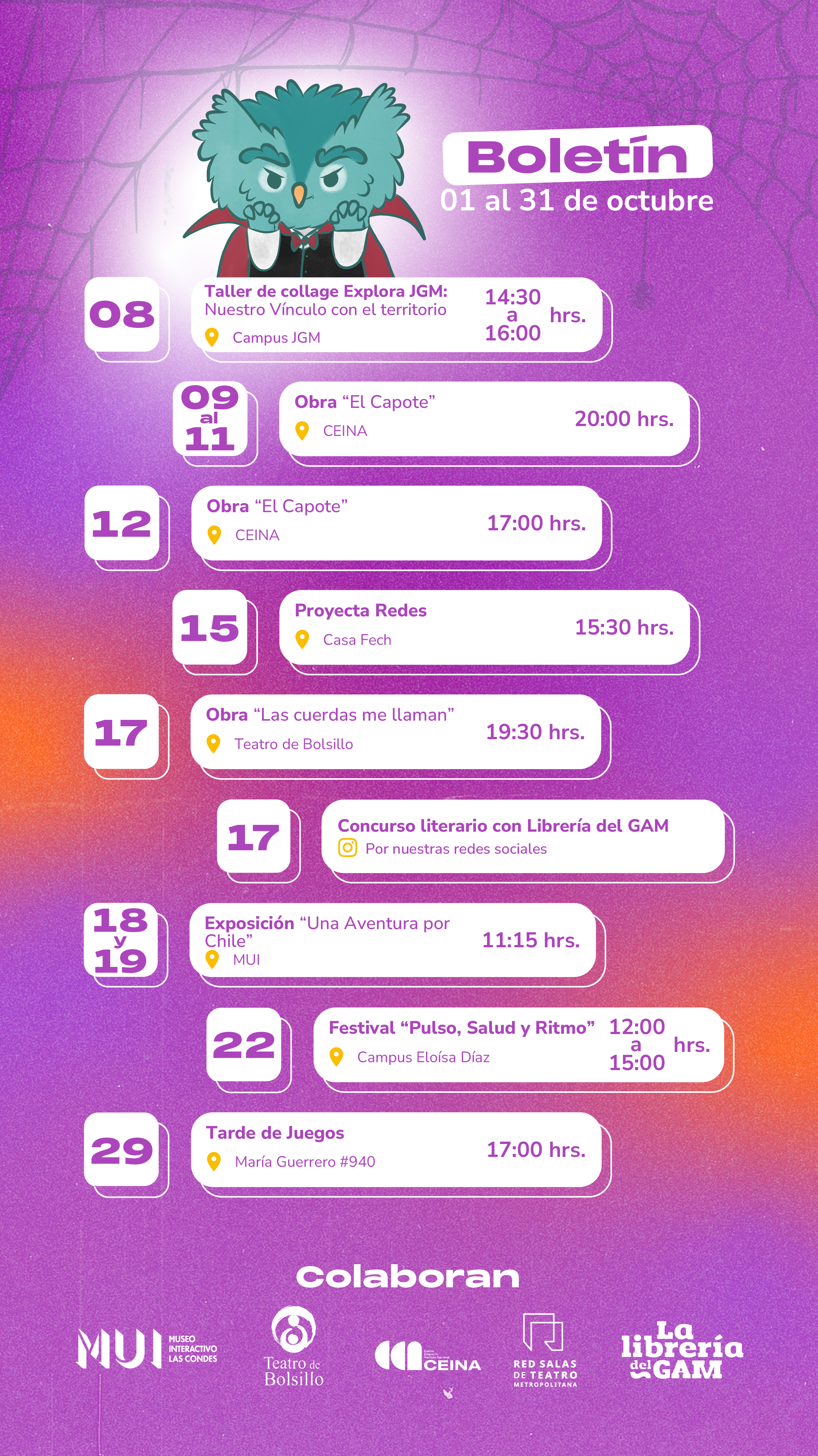 Conoce las actividades del mes gestionadas por el Programa de Desarrollo Cultural "La U Invita", en colaboración con otros espacios: talleres, obras de teatro, visitas a museos ¡y mucho más!