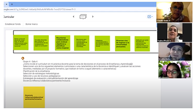 Al finalizar los/as participantes, realizaron una actividad en grupos reducidos, donde a través de Jamboard pudieron reflexionar sobre la incidencia del curriculum en sus prácticas docentes. En un plenario de cierren se expusieron las distintas ideas.