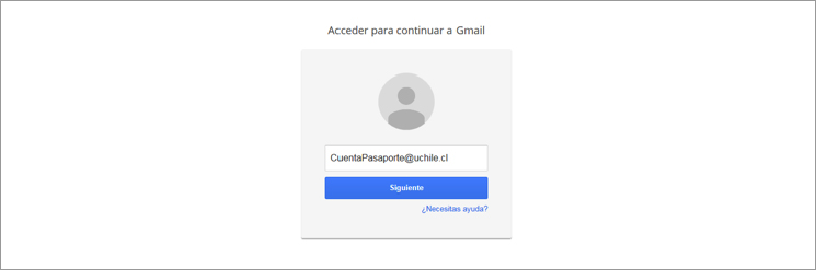 Su inicio de sesión será sólo con PasaporteUchile@uchile.cl.