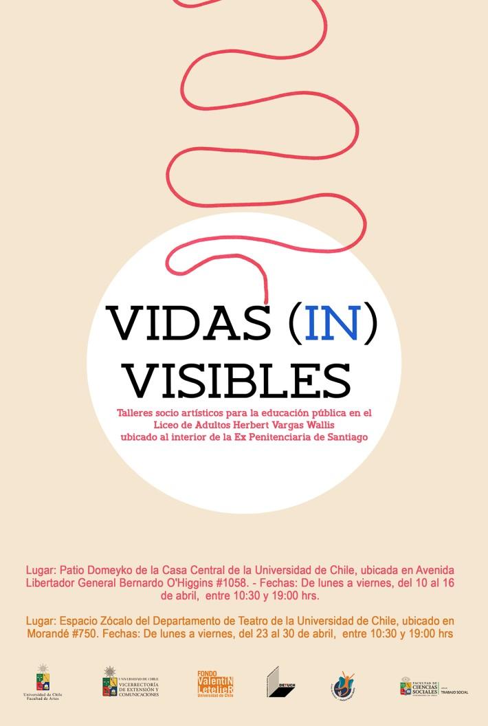 (Avenida Libertador Bernardo O'Higgins 1058, Santiago)Este 10 de abril se inaugurará la exposición del proyecto “Vidas (in) visibles: talleres socio-artísticos para la educación pública en la ex penitenciaría de Santiago”, realizado en 2018 en el Liceo de Adultos Herbert Vargas Wallis, por un grupo de estudiantes, funcionarios, egresados y académicos de la Universidad de Chile pertenecientes al Departamento de Teatro de la Facultad de Artes y al Núcleo de Estudios Críticos de la Diversidad, el Departamento de Estudios Pedagógicos y el Instituto de la Comunicación y la Imagen de la Facultad de Ciencias Sociales.