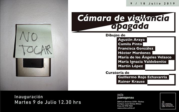 (Las Encinas 3370, Ñuñoa, Santiago, Chile)Estudiantes del Taller de Dibujo del Departamento de Artes Visuales de la Facultad de Artes de la Universidad de Chile, impartido por el académico, Rainer Krause, se reúnen en la exposición Cámara de vigilancia apagada en la que presentarán los trabajos realizados durante el 2018.