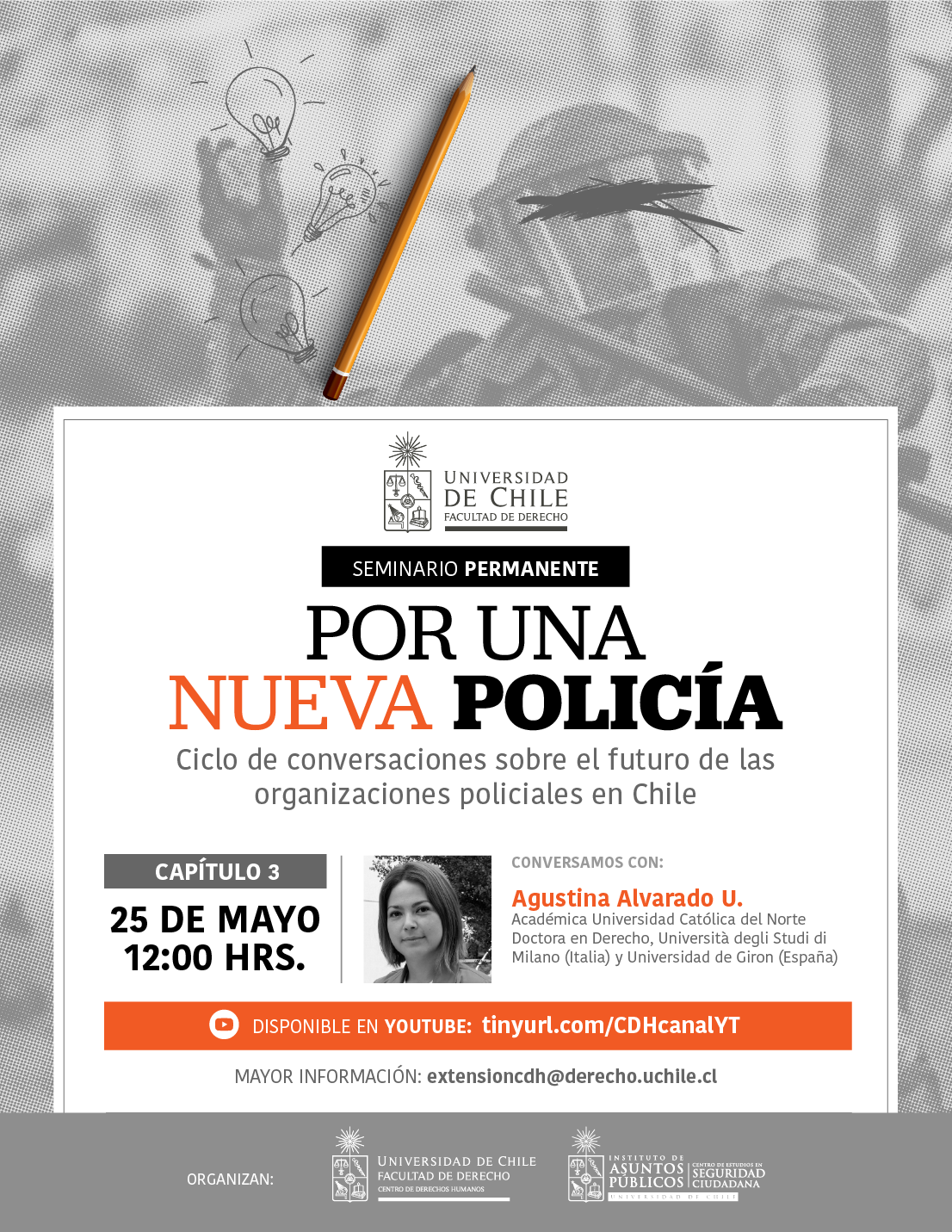 (https://tinyurl.com/CDHcanalYT)Ciclo de conversaciones sobre el futuro de las organizaciones policiales en Chile.