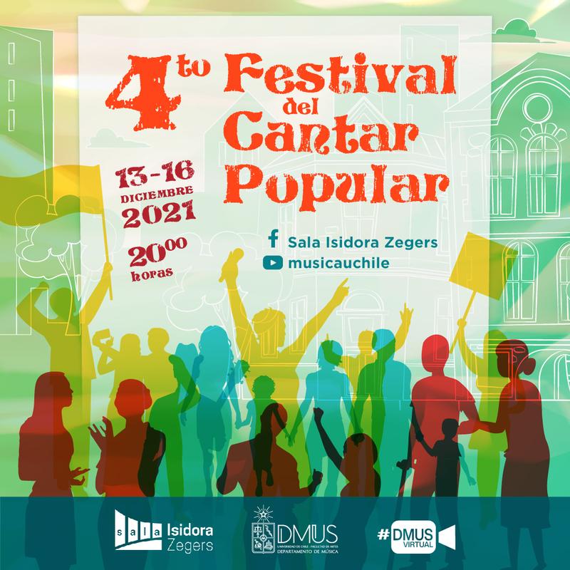 El cuarto Festival del Cantar Popular de la Universidad de Chile se transmitirá a través del canal de Youtube Música U.Chile entre el 13 y el 16 de diciembre a las 20 horas.