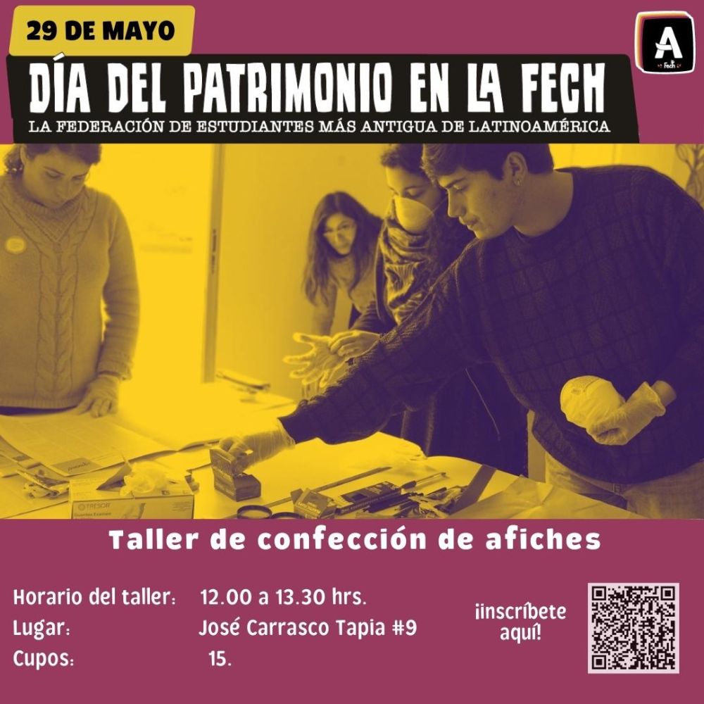 Si te interesa la construcción y usos de afiches políticos de organizaciones sociales te invitamos a inscribirte para participar en este taller, a desarrollar en el marco del día de los patrimonios 2022.