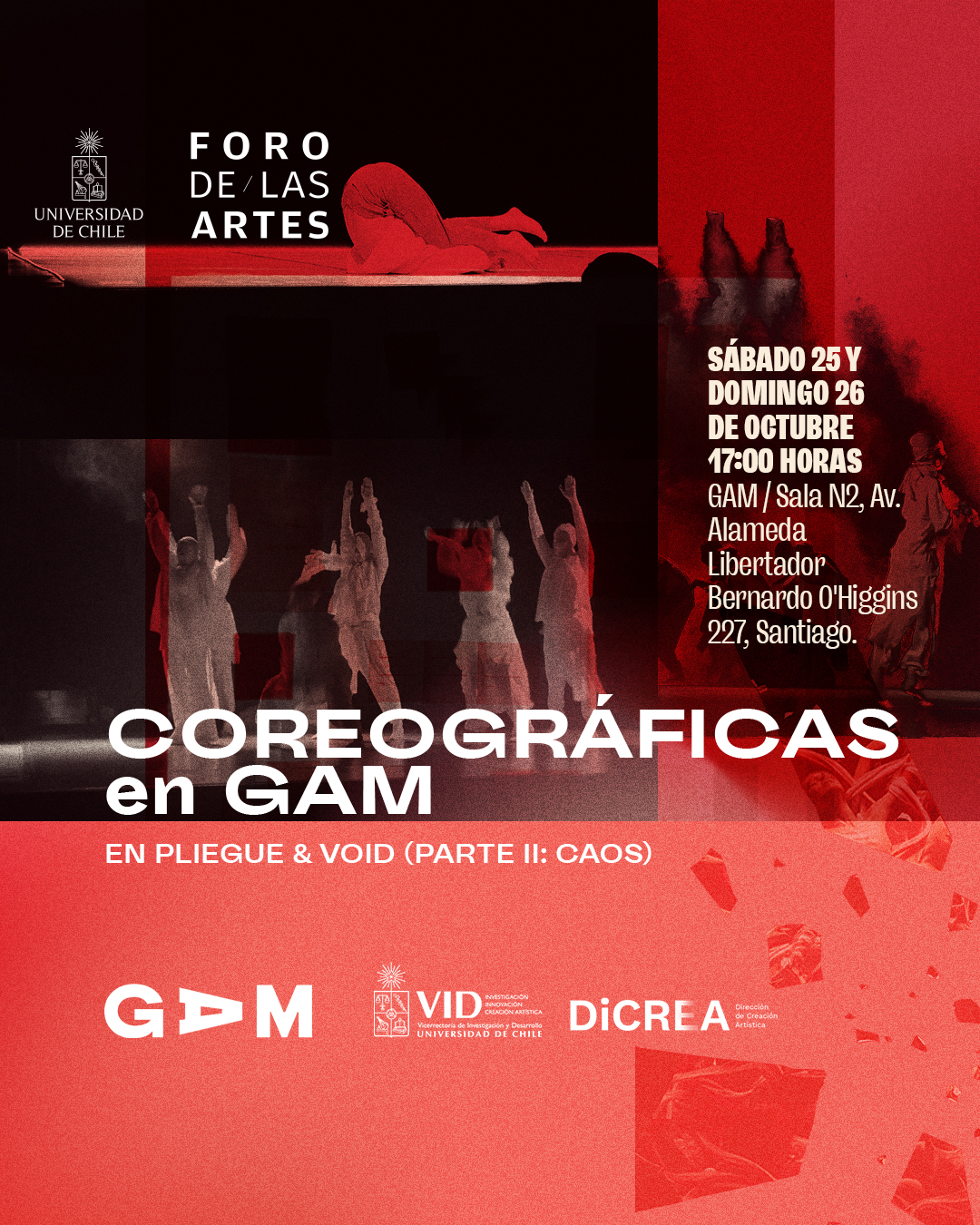 (Av. Alameda Libertador Bernardo O'Higgins 227, Santiago.)COREOGRÁFICAS llega a GAM con dos obras que formaron parte de la primera edición del encuentro de danza emergente de la Universidad de Chile en 2024.