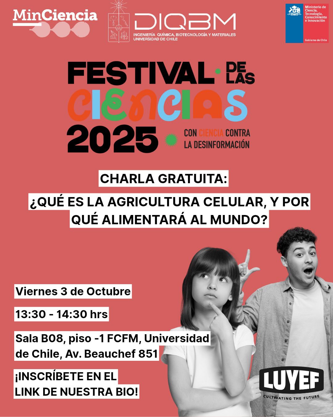 (Beauchef 851. Santiago.)Charla Luyef:¿Qué es la agricultura celular, y porque alimentará al mundo?