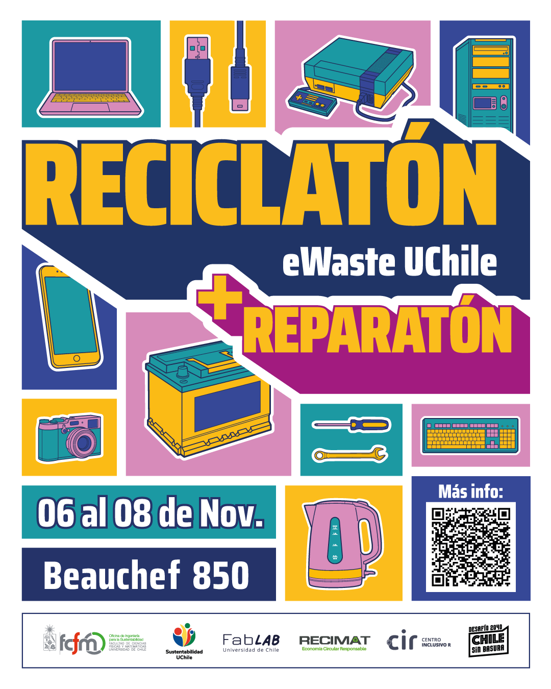 (Beauchef 850. Santiago.)Súmate a la nueva versión de la Reciclatón + Reparatón eWaste UChile que se realizará en la Facultad de Ciencias Físicas y Matemáticas.