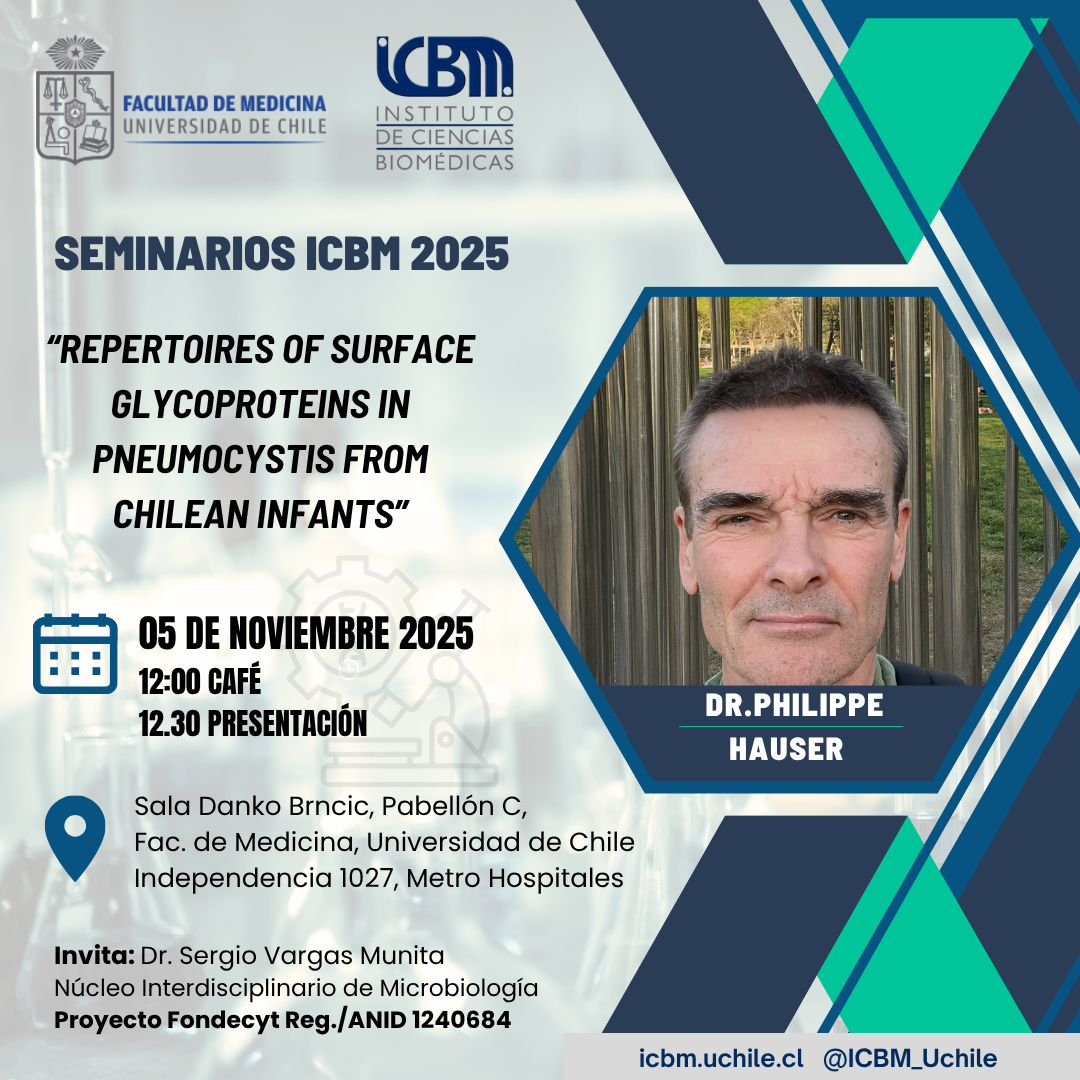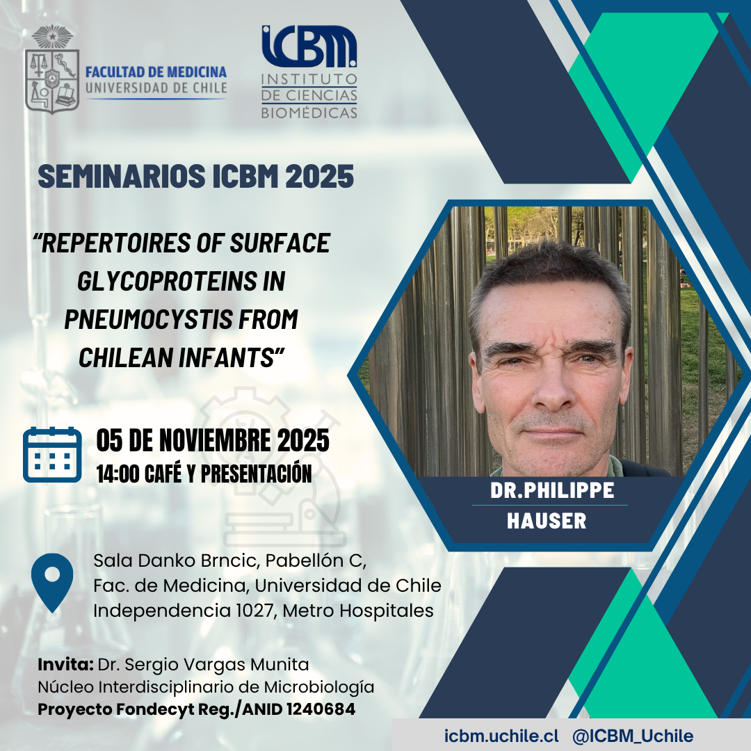 En esta ocasión contaremos con la participación del Dr. Philippe Hauser, Research Leader del Institute of Microbiology, University Hospital of Lausanne (Suiza), quien dictará la charla titulada: “Repertoires of surface glycoproteins in Pneumocystis from Chilean infants”.
