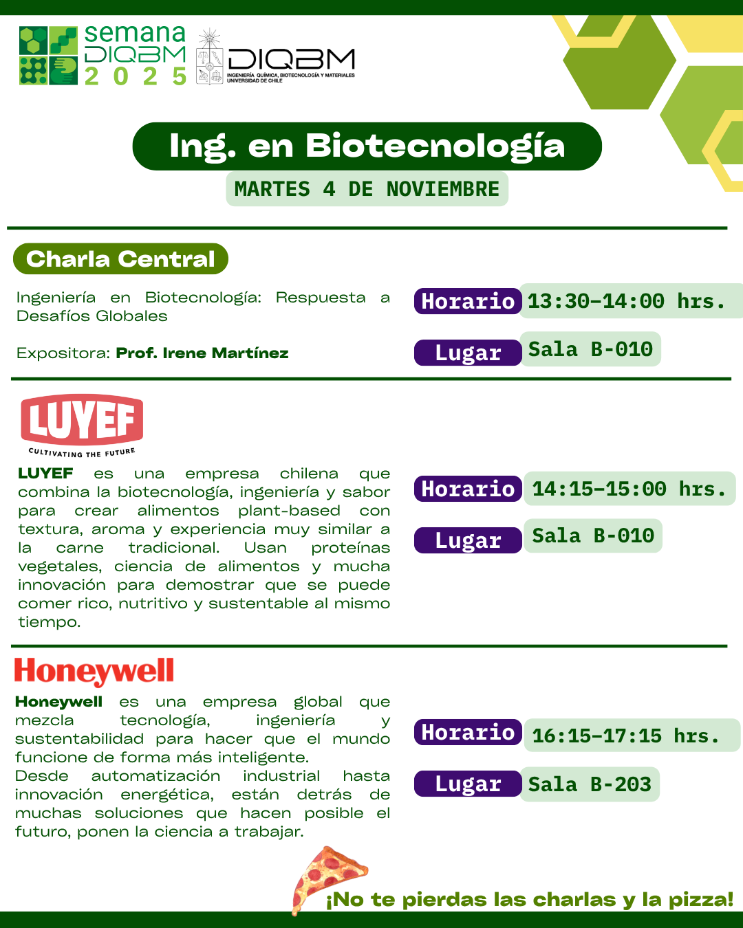Charlas con la Prof. Irene Martínez, Luyef Biotechnologies y Honeywell.