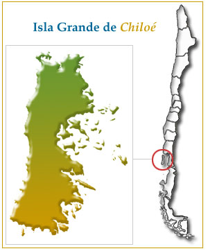 El Archipiélago de Chiloé se extiende entre el Canal de Chacao y el Golfo de Corcovado. Su centro está en la Isla Grande de Chiloé, donde vive la mayoría de la población (100.000 habitantes). Entre la Isla Grande y el continente se ubican unas doscientas islas, la mayoría muy pequeñas; cincuenta de ellas están habitadas por 18.000 personas. Las mejores condiciones de vida se dan en los sectores protegidos del este de las islas. Allí el mar de las islas ofrece condiciones más seguras para la navegación de cabotaje y las comunicaciones. La espesa cubierta forestal original todavía sobrevive en algunos lugares. La