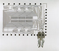 Acero inoxidable y fotolito, 100 x 100 cm.