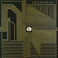Madera lacada negra, técnica mixta, 100 x 100 cm.