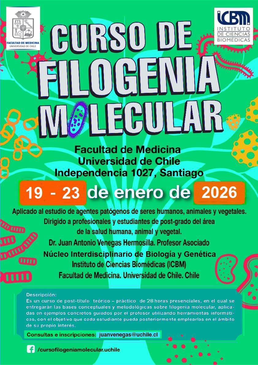 Este programa formativo tiene como propósito entregar a profesionales e investigadores del área de la salud humana, animal y vegetal las bases teóricas y metodológicas fundamentales de la filogenia molecular, así como sus principales aplicaciones en el estudio de agentes patogénicos. El curso aborda el uso de herramientas filogenéticas para comprender el origen, la evolución y las relaciones de parentesco entre patógenos, permitiendo analizar si estos son endémicos o exóticos, identificar posibles reservorios y proyectar la dinámica evolutiva de brotes epidémicos.