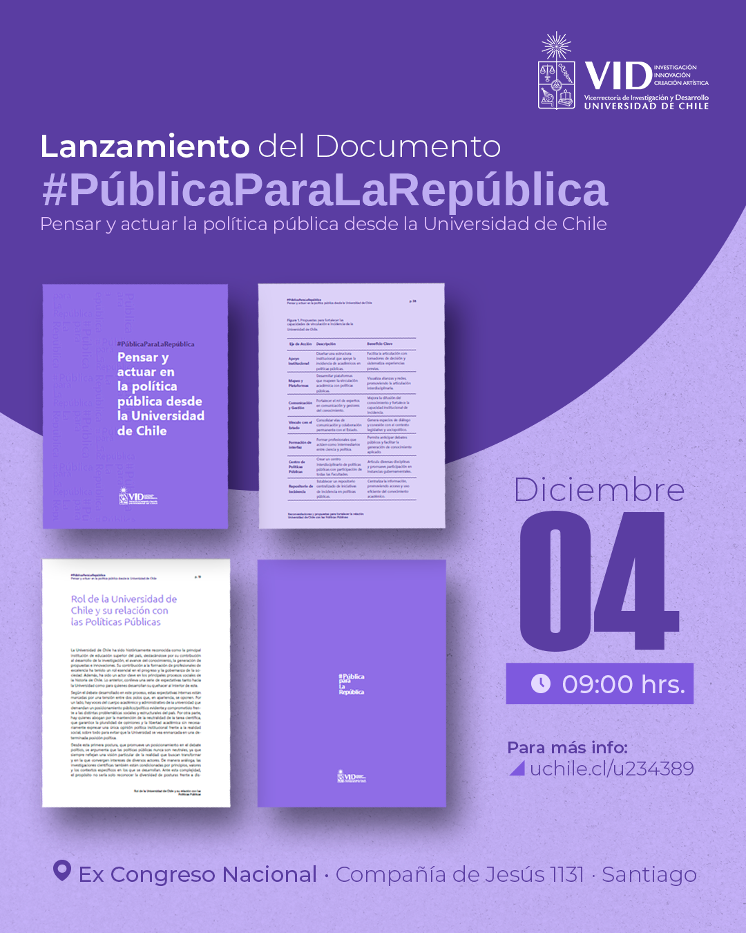 La Vicerrectoría de Investigación y Desarrollo invita a participar del lanzamiento de #PúblicaParaLaRepública, iniciativa que une a la academia y al Estado con el propósito de construir políticas públicas con sentido de bien común.