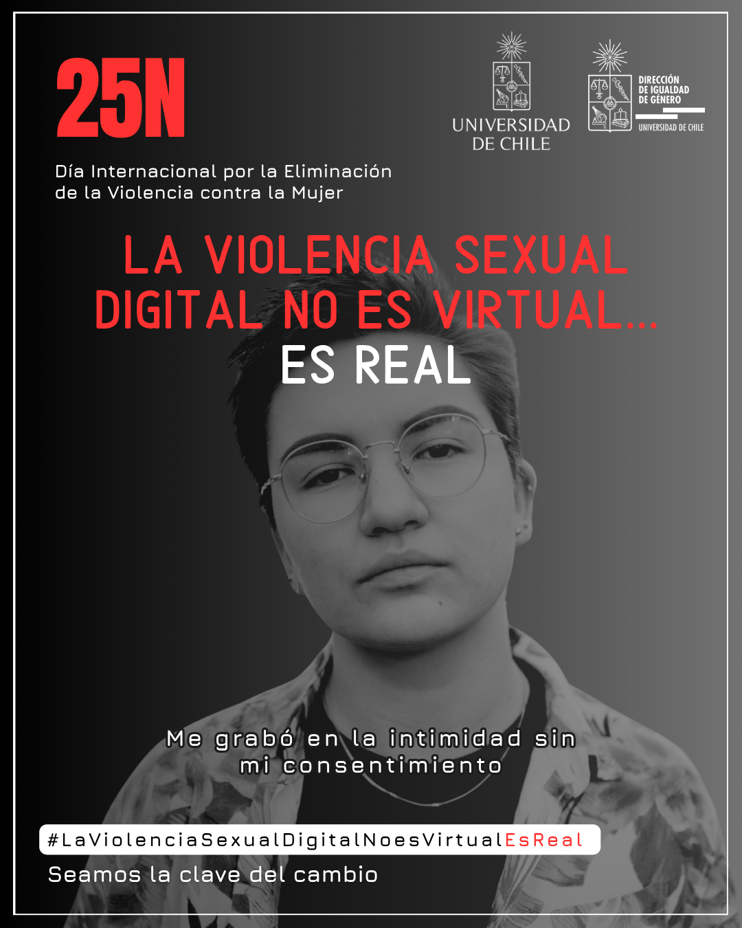 En el marco de la conmemoración del Día Internacional de la Eliminación de la Violencia contra las Mujeres, la Dirección de Igualdad de Género lanzó la campaña “La Violencia Digital No es Virtual. Es Real. Seamos La Clave Del Cambio”, con el propósito de prevenir y visibilizar la gravedad y la creciente magnitud de este fenómeno. Carmen Andrade, directora de Igualdad de Género, señala que “uno de los grupos más afectados son las mujeres jóvenes, porque es la generación que tiene mayor presencia en el mundo virtual. Ellas son justamente las que están en la educación superior, por lo tanto, no podemos hacer como si esto fuera algo esporádico e inofensivo. Por eso hemos impulsado una campaña que, junto con relevar un problema muy complejo, invita a la comunidad universitaria, especialmente a las y los estudiantes, a ser parte del cambio para erradicar estas conductas”.
