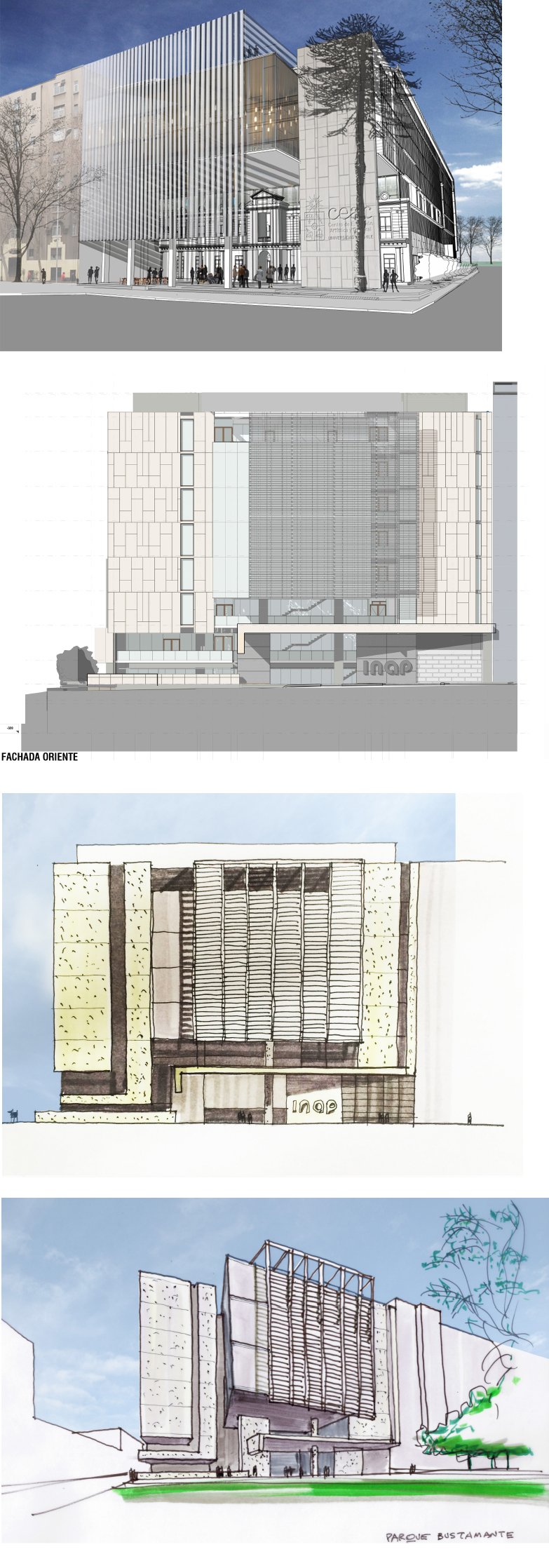 Asimismo, ya está en desarrollo el anteproyecto del edificio (disponible en el archivo adjunto), que incluye la fachada de la ex Facultad de Ciencias Químicas y Farmacéuticas y que muestra la distribución de los espacios para el INAP y las otras unidades académicas que formarán parte del inmueble.