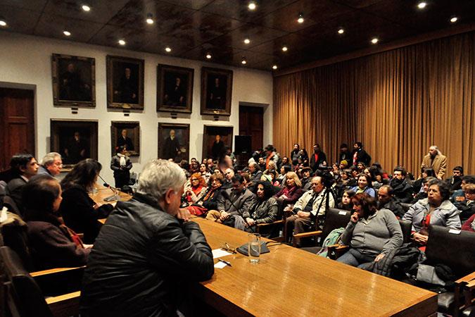 El coloquio además contó con la presencia del Vicerrector de Investigación y Desarrollo, Flavio Salazar, la decana María Eugenia Góngora, de la Facultad de Filosofía y Humanidades, el decano Roberto Aceituno, de la Facultad de Ciencias Sociales, además de miembros de organizaciones de DD.HH., entre ellos Viviana Díaz, quien fuera presidenta de la Agrupación de Familiares de Detenidos Desaparecidos y Premio Nacional de Derechos Humanos, dijo que este coloquio era muy relevante porque este es un problema “de la sociedad chilena y por lo tanto hubo que hacer conciencia y convencer a nuestros propios compatriotas en esa época de que la desaparición forzada era un método que se estaba implementando en nuestro país, y que la gente desaparecía sin dejar rastro”. Agregó que “el hecho de que se haga esta conmemoración en la Casa Central de la U. de Chile, para mí en lo personal es importantísimo porque por primera vez la Universidad abre sus puertas para tratar este tema”.