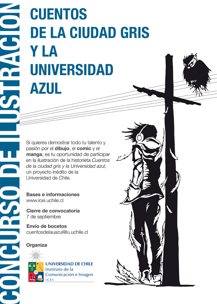 La Universidad de Chile, a través de Rectoría y el Instituto de la Comunicación e Imagen, ICEI, invita a todos los estudiantes de la universidad apasionados por el dibujo, el fanart, el comic y el manga japonés, a participar en la ilustración de la historieta Cuentos de la Ciudad Gris y la Universidad Azul, un proyecto inédito de nuestra casa de estudios.