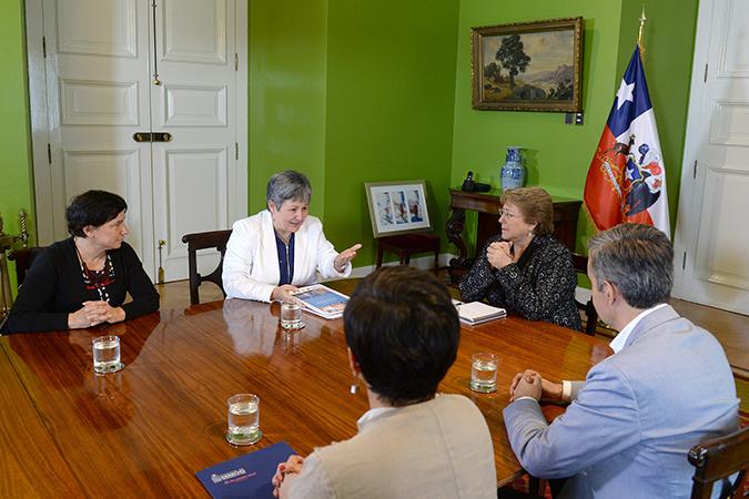 Hasta el Palacio de La Moneda llegaron este lunes los investigadores del Centro de Ciencia del Clima y la Resiliencia (CR)2 para entregar a la Presidenta Michelle Bachelet el Informe a la Nación "La megasequía 2010-2015: una lección para el futuro", elaborado por dicho centro de excelencia, financiado por FONDAP.