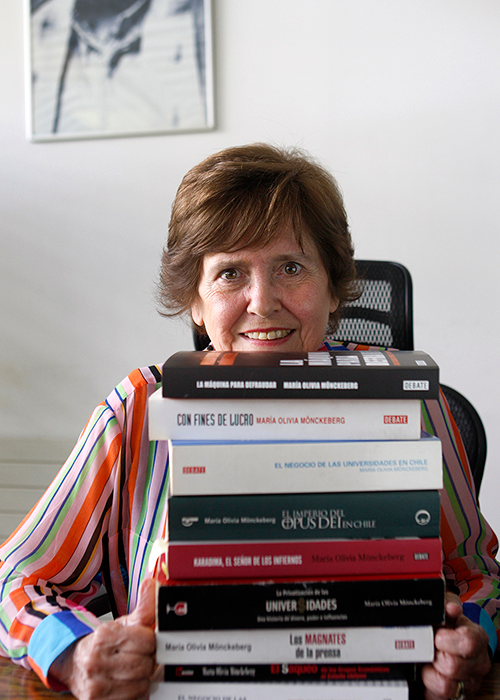 “La máquina para defraudar” (Penguin Randome House, 2015) es el octavo libro de periodismo de investigación que publica la Premio Nacional 2009. Cada vez que uno aparece a la luz, cuenta Mönckeberg, la tendencia es que al poco tiempo entra en los rankings de lectoría de El Mercurio y La Tercera. Y esas, sólo esas, son las veces en que sus libros aparecen mencionados en la prensa tradicional.