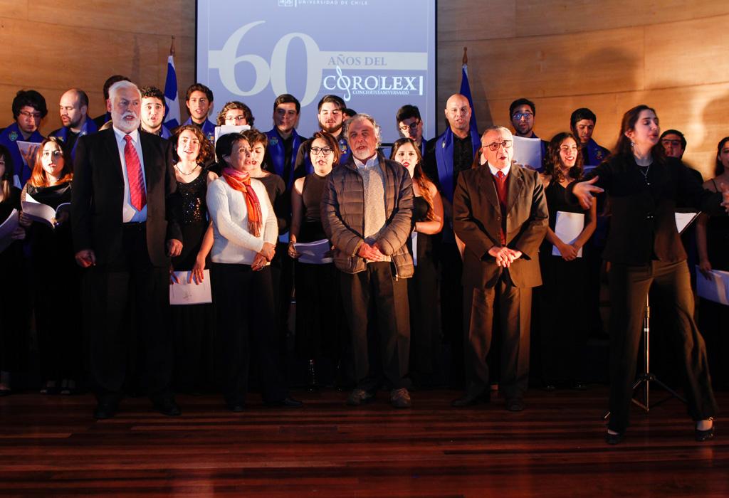 En uno de los conciertos más emotivos que se tenga recuerdo, el pasado 14 de junio el Coro Lex de la Facultad celebró su aniversario número 60 ante una audiencia que llegó masivamente al Aula Magna de la Escuela y que tuvo entre los presentes a ex integrantes del coro, tres ex directores y a la hija de su fundador (Mario Baeza Gajardo), Marcela Baeza.