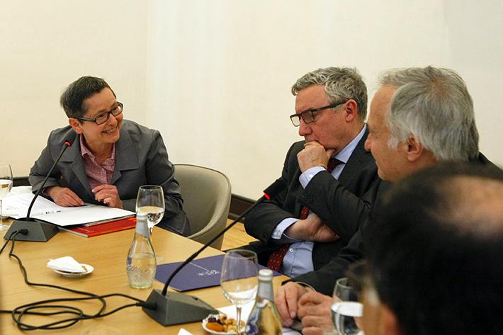 Durante la primera jornada, los 15 integrantes de la delegación alemana, encabezados por la vicepresidenta de la Universidad de Hamburgo, Susanne Rupp, se reunieron con el Rector de la Universidad de Chile, Ennio Vivaldi, el director de Relaciones Internacionales, Eduardo Vera, el decano de la Facultad de Ciencias Físicas y Matemáticas, Patricio Aceituno, la decana de la Facultad de Filosofía y Humanidades, María Eugenia Góngora, entre otras autoridades y académicos locales.